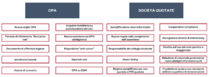 OPA totalitaria: (i) soglia unica al 30% della partecipazione sociale o dei diritti di voto; (ii) eliminazione della soglia ridotta del 25% per le società di maggiori dimensioni (non PMI) e della possibilità per le PMI di individuare nello statuto una soglia compresa tra il 25% e il 40%.